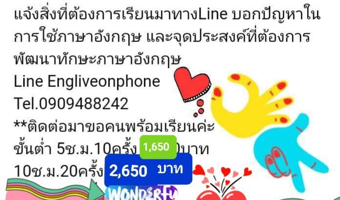 ![]() ![]() ![]() รับสอนภาษาอังกฤษ เรียนผ่านโทรศัพท์ ทุกช่วงวัย(เริ่มคุยโทรศัพท์ได้เป็นต้นไป) ทุกพื้นฐาน คุณครูน่ารัก ใจดี Line Engliveonphone
